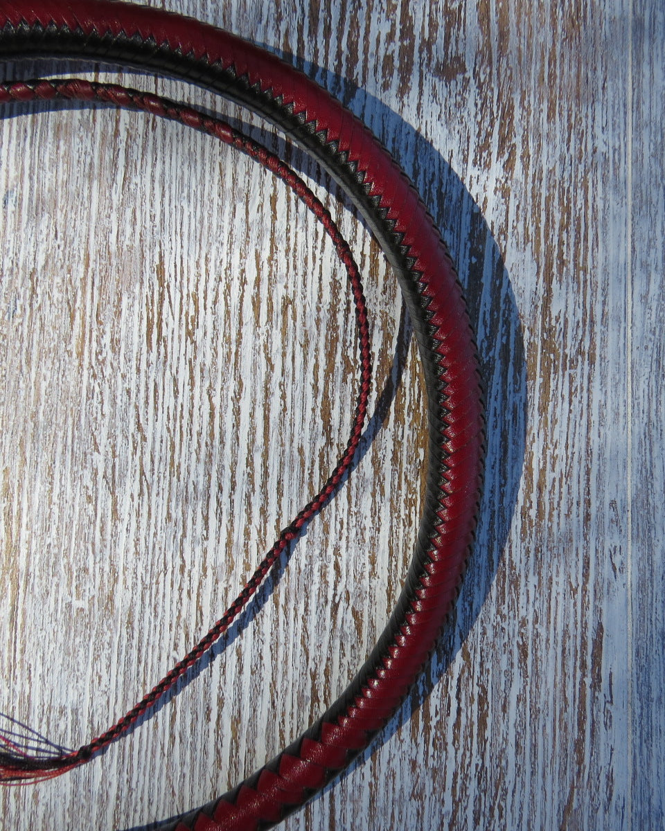 4ft Traditional 2-toned Red and Black 16plait Signal Whip - shot loaded, plaited belly and braided in that recognisable, "Murphy Whip" pattern of old. Every signal whip is finished in the same way, in a short under one over one sennet and then the strands pair up for the last inch and carry into the heel knot. I've always loved making signal whips. For me, it's always been about how they layer up and reveal form. Also available 2-toned in a slightly more subtle colour mix of brandy and red. If a 3ft signal whip is for you, please let me know, I'm happy to make that happen.