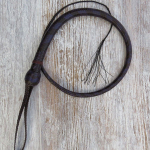 3ft 2-toned Purple and Brandy 16plait Signal Whip - shot loaded, plaited belly and braided in that recognisable, "Murphy Whip" pattern of old. Every signal whip is finished in the same way, in a short under one over one sennet and then the strands pair up for the last inch and carry into the heel knot. I've always loved making signal whips. For me, it's always been about how they layer up and reveal form. Also available 2-toned in a slightly more sharper colour mix of black and red. If a 4ft signal whip is for you, please let me know, I'm happy to make that happen.