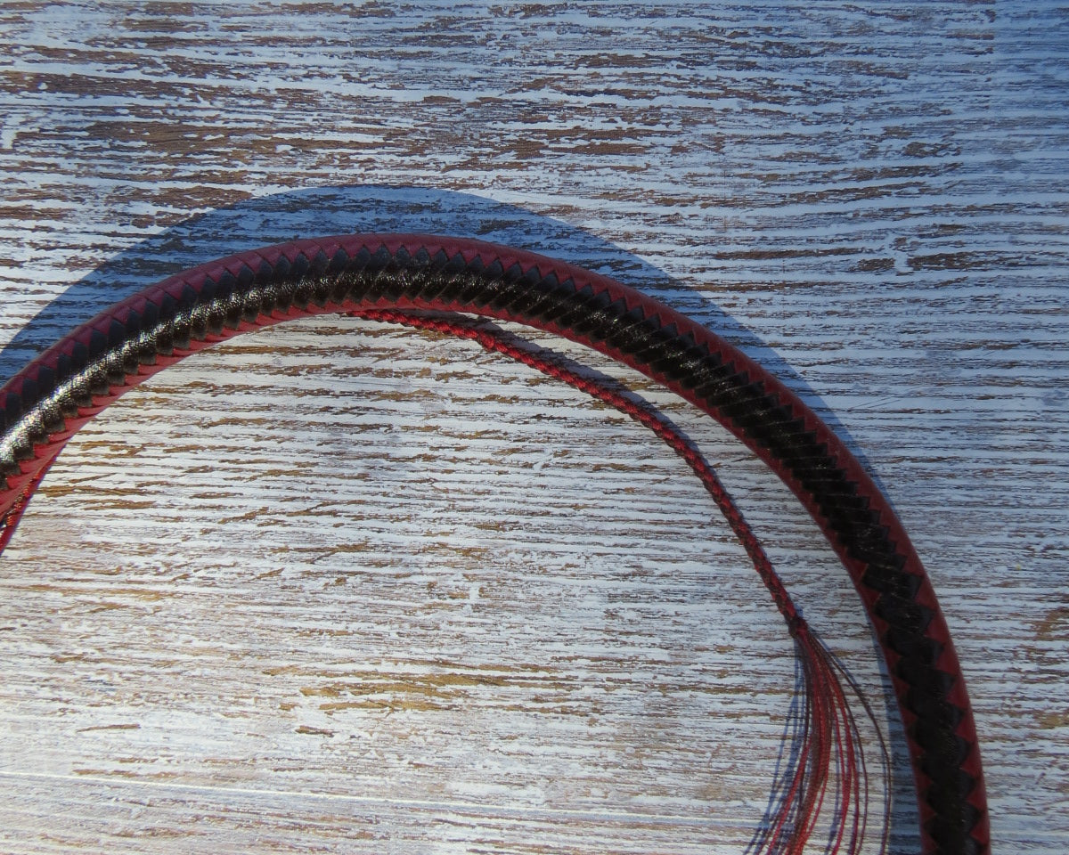 4ft Traditional 2-toned Red and Brandy 16plait Signal Whip - shot loaded, plaited belly and braided in that recognisable, "Murphy Whip" pattern of old. Every signal whip is finished in the same way, in a short under one over one sennet and then the strands pair up for the last inch and carry into the heel knot. I've always loved making signal whips. For me, it's always been about how they layer up and reveal form. Also available 2-toned black and red. If a 3ft signal whip is for you, please let me know, I'm happy to make that happen.