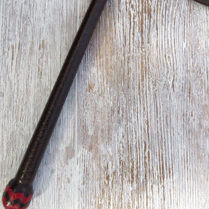 6ft 8-plait 1/2-Caned Australian Stock Whip in Brandy Tan with Red Highlights. Handmade by Mike Murphy, a naturally weighted 8plait thong matched with an 8-plait 1/2-Toheti caned 21in handle. 6ft has always been the required competition legal length for an accuracy competition stockwhip. With this in mind, this whip is made 6ft 2in long so it always passes whip check at whipcracking competitions. 6ft stockwhips have always been the most chosen length for single handed whipcracking skills. A 6ft 8-plait 1/2-Cane is hard whip to look past for your first stockwhip.